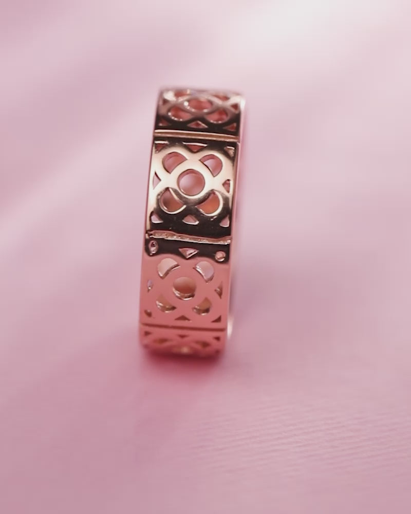 The Aurelace Rose Gold Ring brings delicate drama to your style. Crafted in warm rose gold with a lace-cut pattern, it creates soft dimension and a gentle rose-like glow with every movement.