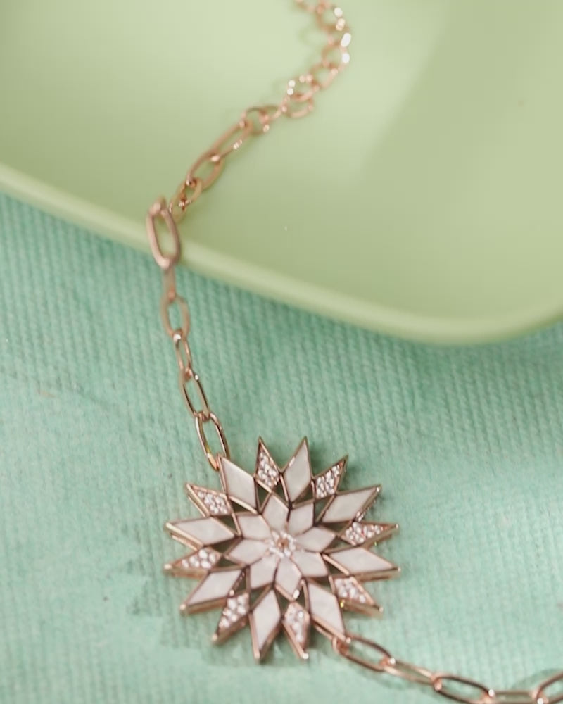 The Celestira Rose Gold Bracelet brings star-like brilliance with its sculpted rose-gold finish and high-shine design, bold yet refined in a celestial-inspired form that catches the light beautifully.