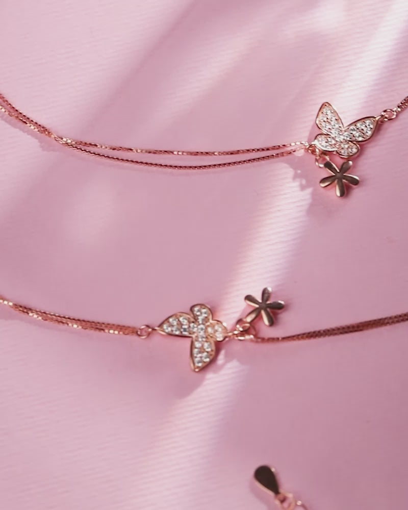 The Everbloom Rose Gold Anklets bring a youthful shimmer with their playful charm accents and warm rose-gold finish, reflecting warmth and light in a way that feels magical yet effortless.
