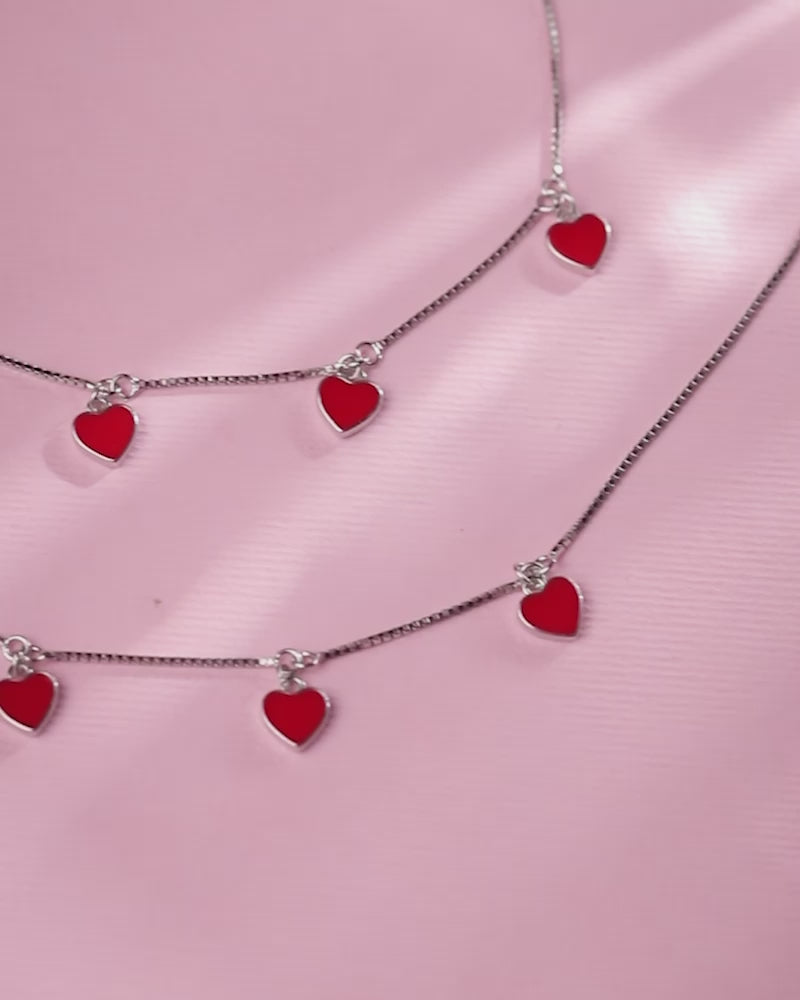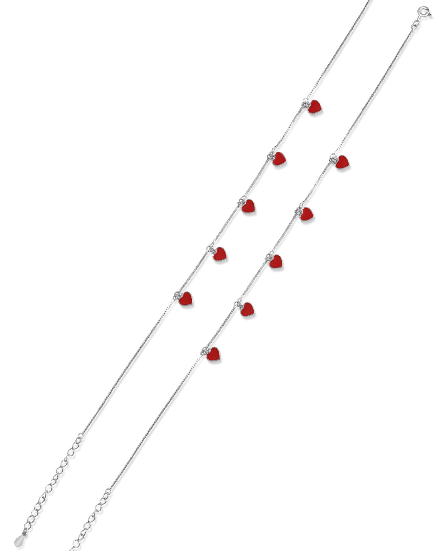 Hues of Heart Silver Anklets