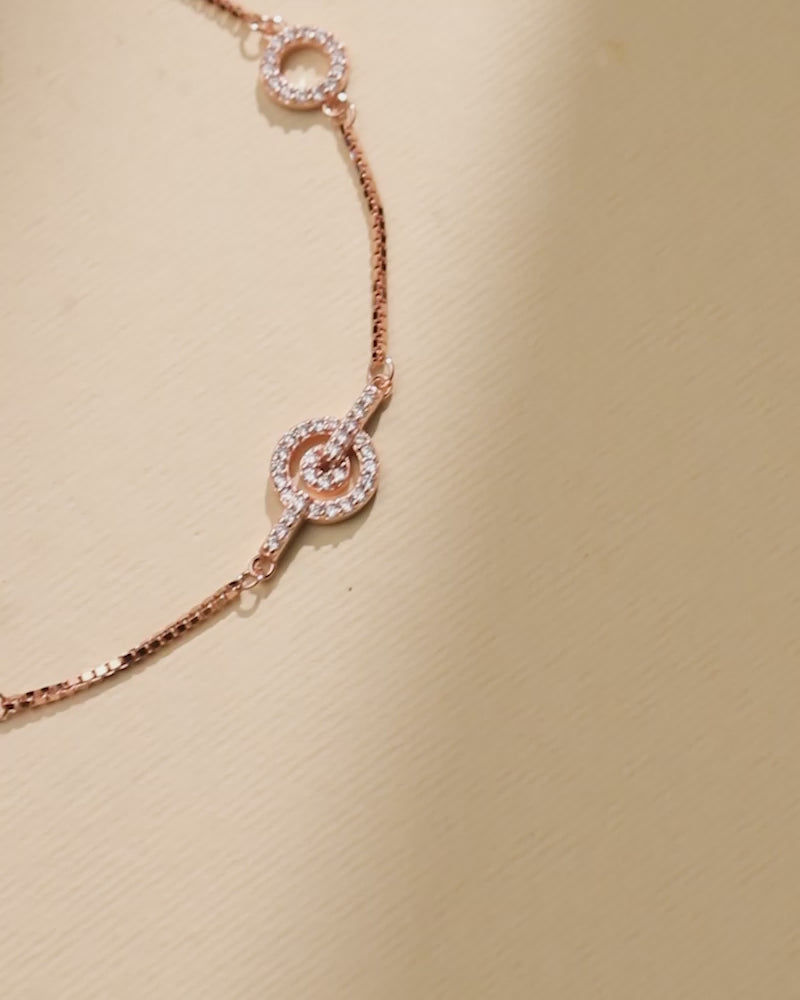 The Mira Rose Gold Bracelet is crafted for effortless everyday elegance, designed in rose-gold polished 92.5 sterling silver with a sleek, minimal form that adds a soft glow to any look.