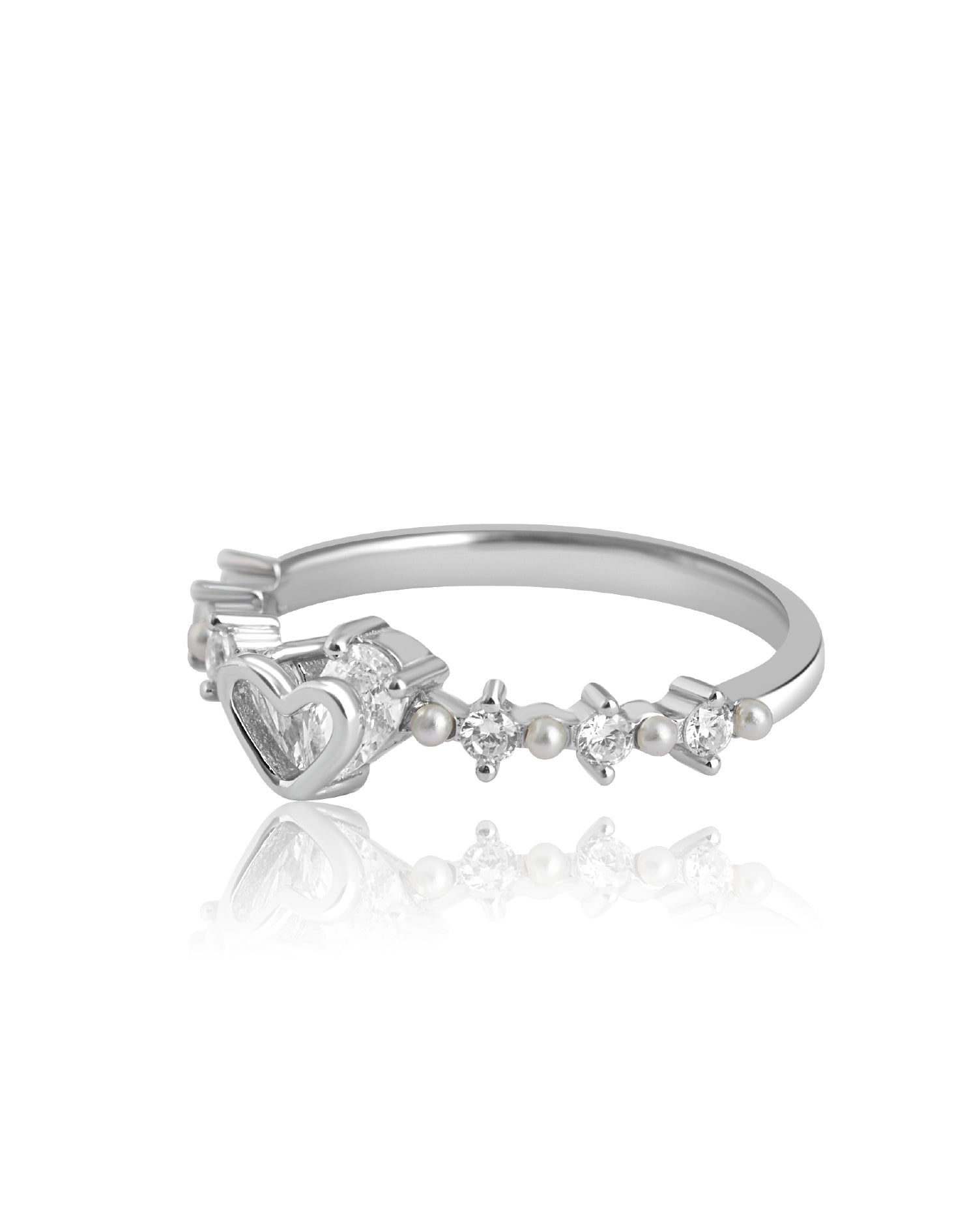 The Moonlace Silver Ring brings a soft, moonlit glow to your style. Designed in clean white with clustered stones, it creates a quiet shimmer that feels serene and lasting.