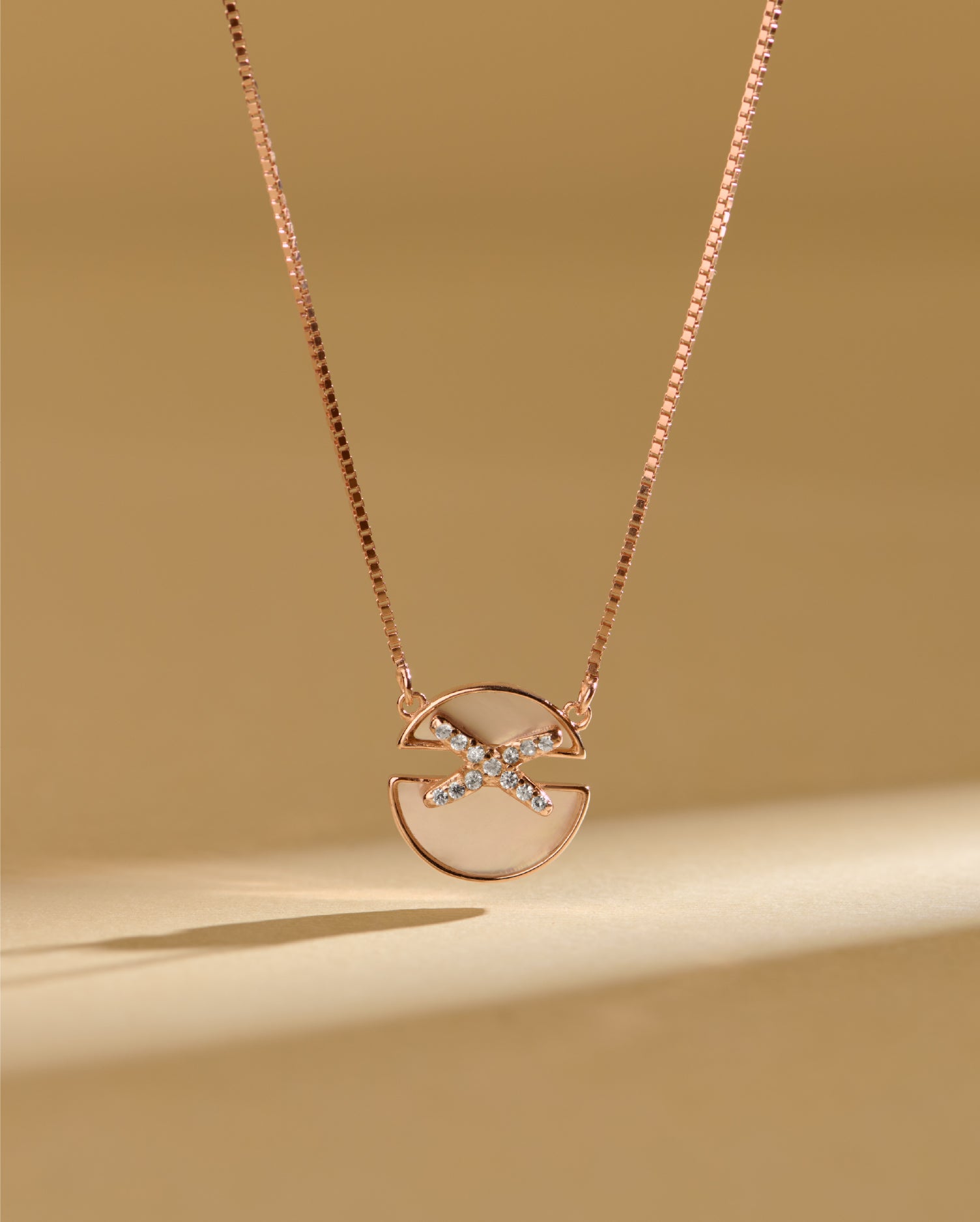 The Sera Rose Gold Chain Pendant features a sleek, minimal design finished in warm rose gold, offering a gentle glow that pairs effortlessly with every neckline and every mood.