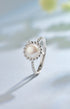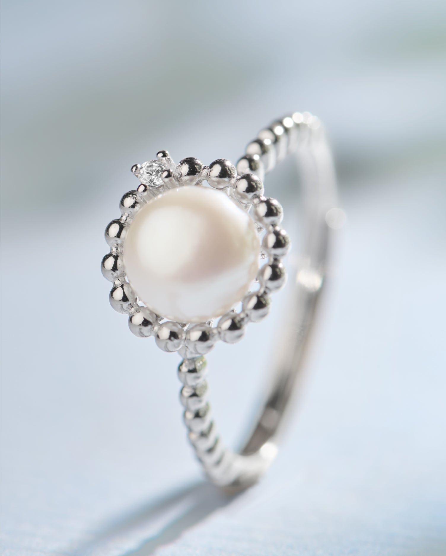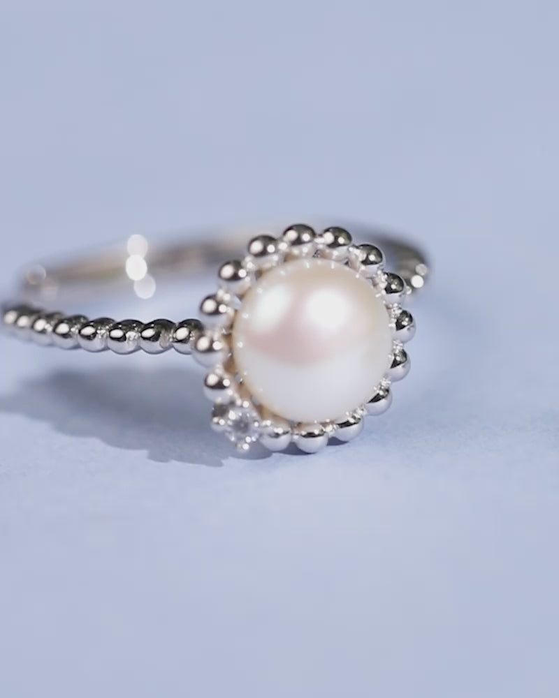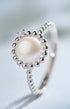 The silver Moonwhisper Ring brings a gentle, graceful glow to your hands. A soft pearl framed with beaded detailing rests on a clean white band, adding instant refinement without effort.