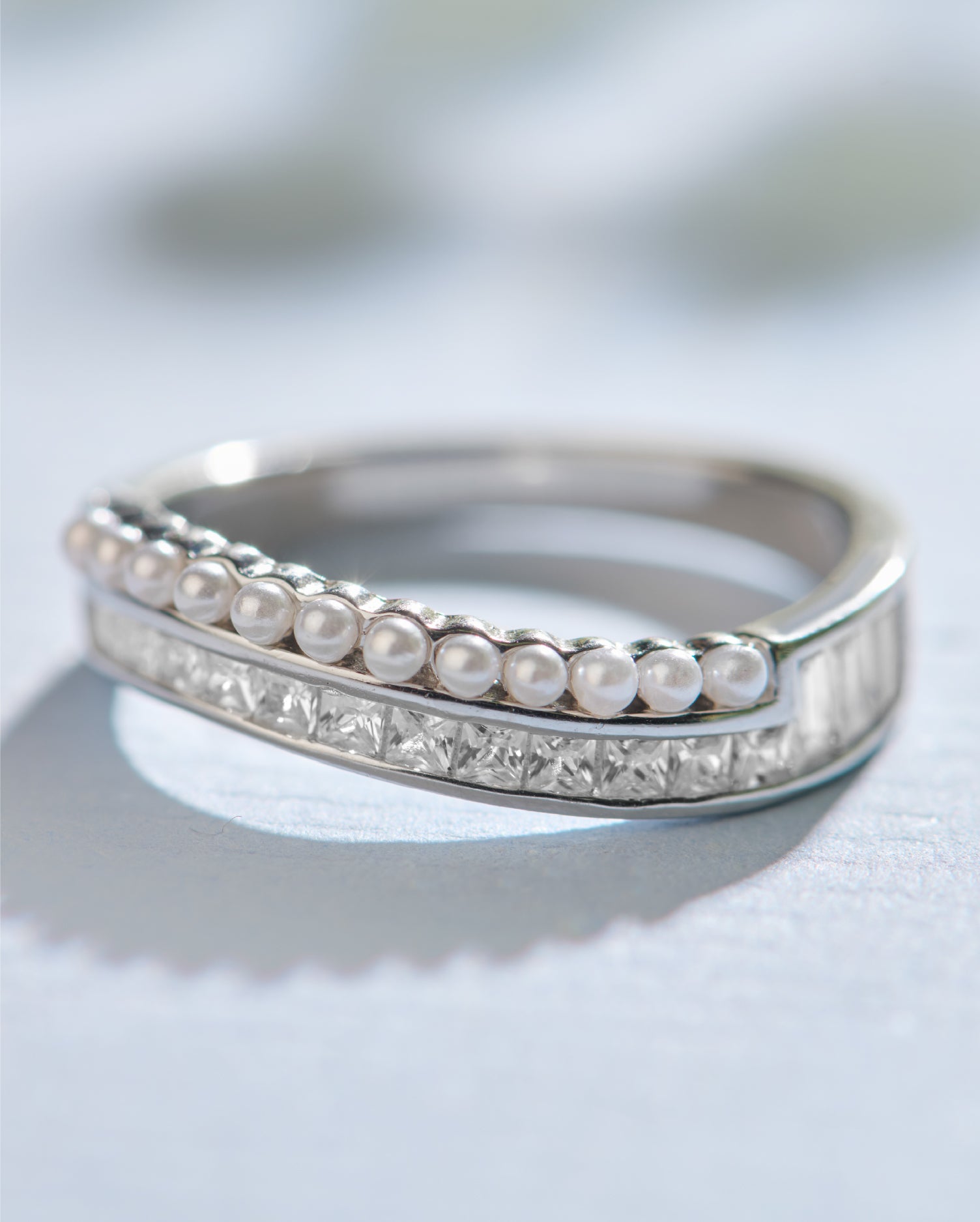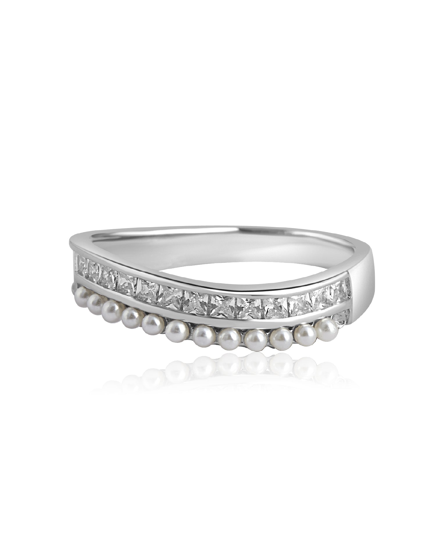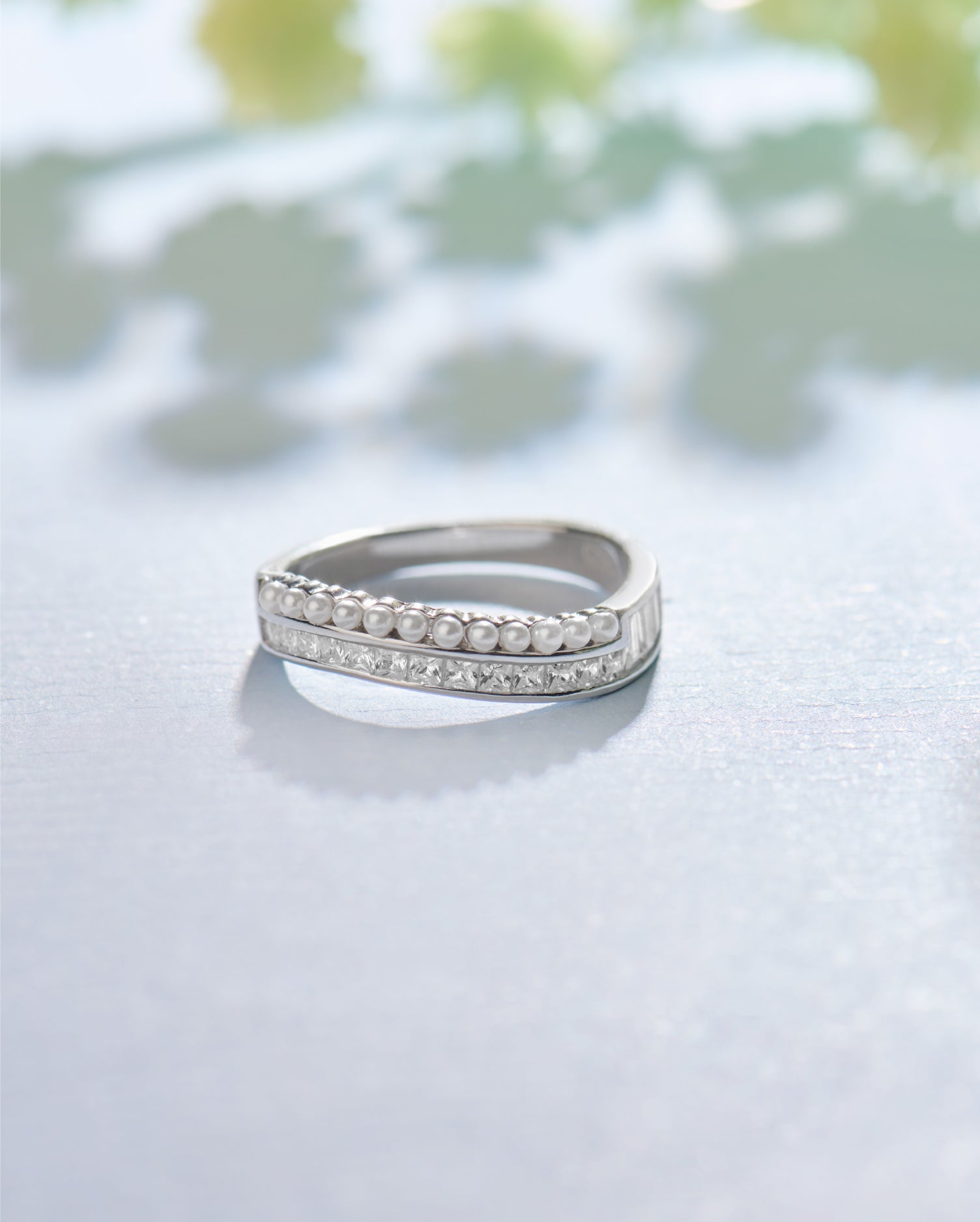 The Silver Solaire Band comes about with a minimal polish to elevate your everyday look. Its clean double-band silhouette and subtle white-set stones create a shine that feels precise and pulled-together.